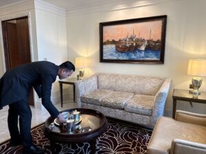 ※バトラーとは、滞在中の部屋を担当し、チェックインから食事や外出の手配までを一貫してサポートしてくれる、ホテルの専任スタッフのことで、上記の写真はアブダビのセントレジスのスイートルームの様子です。